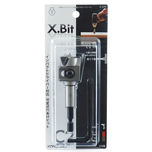 可変式穴あけ工具です。座ぐり、貫通穴に最適です。穴あけサイズが付属のスパナ・六角レンチで調整できます。替刃式です。