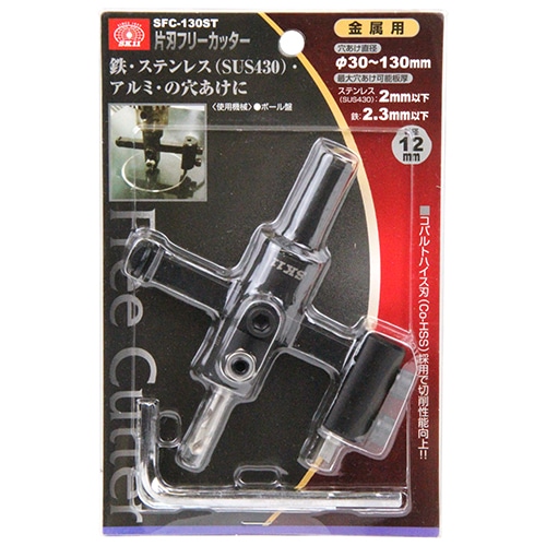 ●最大穴あけ可能板厚:(鉄)2.3mm・(ステンレスSUS430)2.0mm・(アルミ・硬質塩ビ)5.0mm