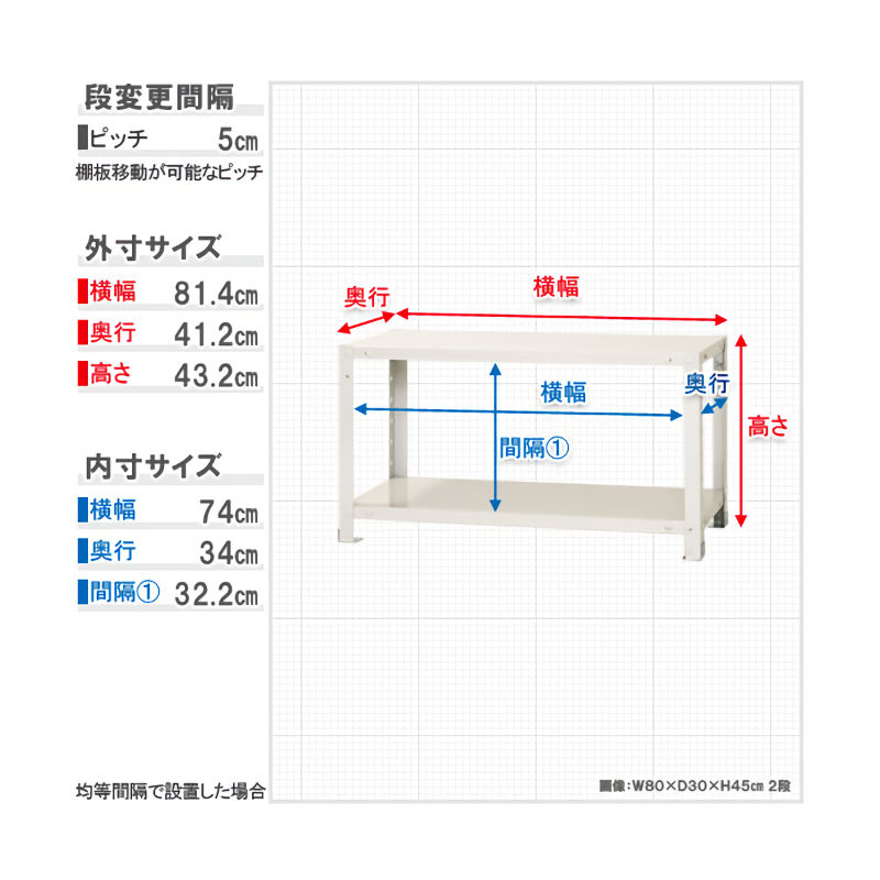 段数:2 幅:80cm 奥行:40cm 高さ:45cm