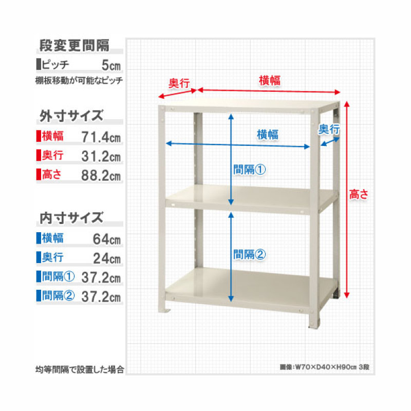 段数:3 幅:70cm 奥行:30cm 高さ:90cm