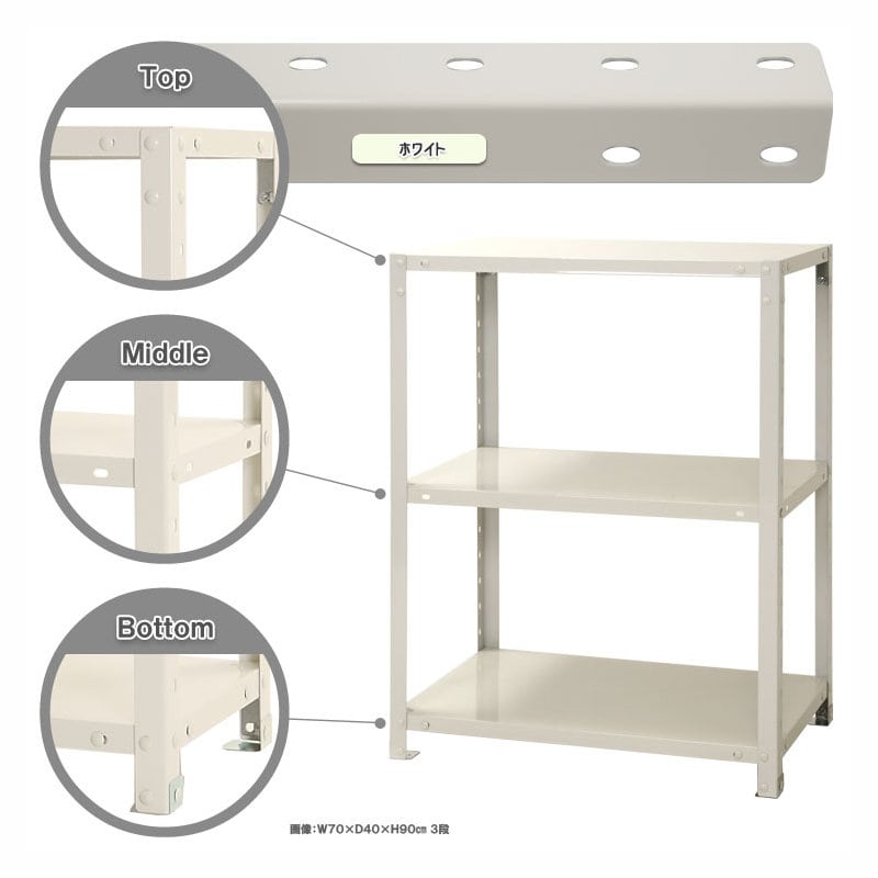 ●1段当たりの耐荷重は40kgで小物収納にピッタリ