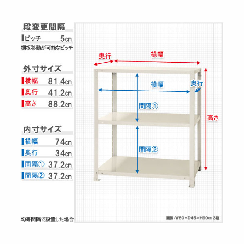 段数:3 幅:80cm 奥行:40cm 高さ:90cm