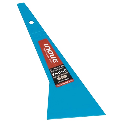 ソフトでしなやかな腰がある板金用の下地ヘラです。車両の微妙な曲線にも対応できます。使用している後、先端が摩耗した場合は紙ヤスリ等で研磨してお使いください。耐薬品性に優れたヘラです。