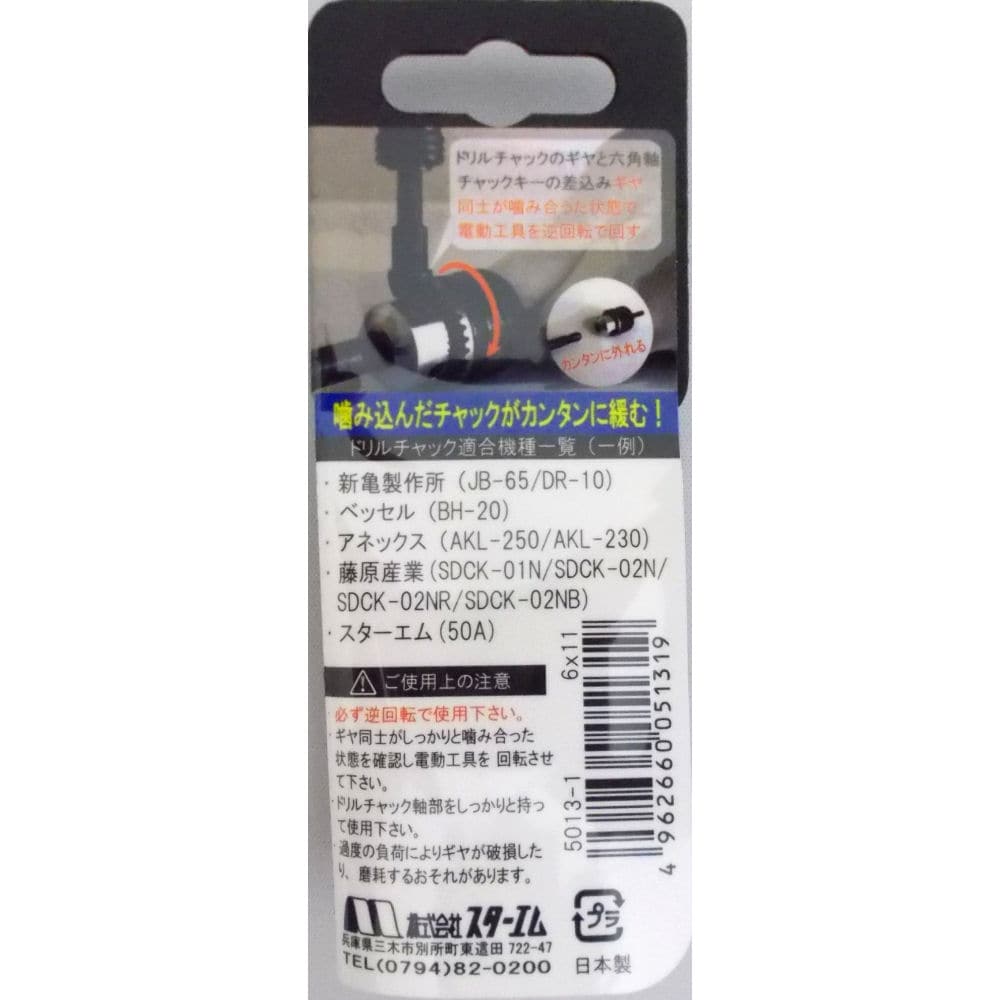 胴部穴に棒を差し込めば、手廻し用のチャックキーとしても使用可能です。