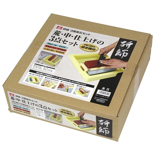 ●砥石サイズ(PC台含む):約90×250mm。●粒度:220・1000・3000番。●研磨材:GC/WA。
