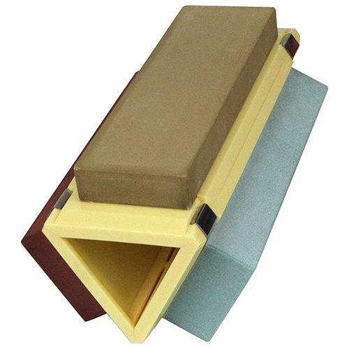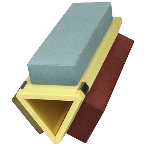 刃物の状態に合わせて、使う砥石を選択できます。水をつけながらの作業を楽に行うため、専用の研ぎ桶がセットになっています。砥石のセッティングは、クリップ式で簡単になっています。