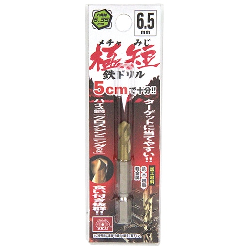 ●サイズ:6.5mm。●標準穴あけ可能厚:(鉄)2.0mm・(木)らせん溝長の2/3程度。●軸:六角軸6.35mm。●使用電動工具:充電式インパクトドライバー・ドリルドライバー・電気ドリル。●加工材料:鉄・木・樹脂・軽金属。