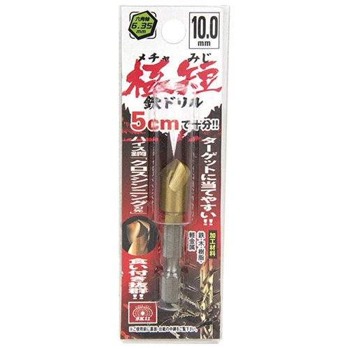 ●サイズ:10.0mm。●標準穴あけ可能厚:(鉄)2.0mm・(木)らせん溝長の2/3程度。●軸:六角軸6.35mm。●使用電動工具:充電式インパクトドライバー・ドリルドライバー・電気ドリル。●加工材料:鉄・木・樹脂・軽金属。