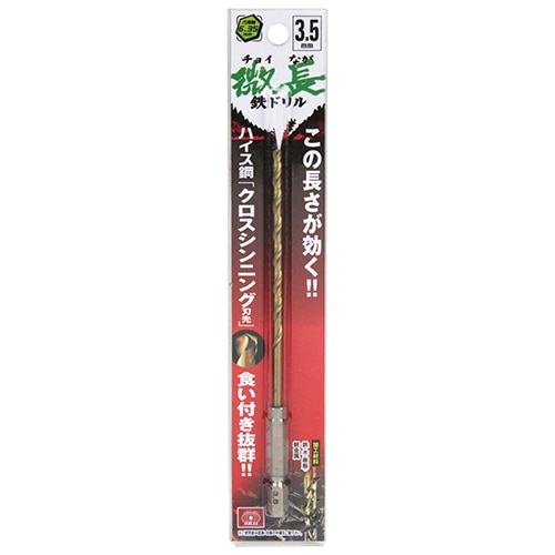 ●サイズ:3.5mm。●標準穴あけ可能厚:(鉄)2.0mm・(木)らせん溝長の2/3程度。●軸:六角軸6.35mm。●使用電動工具:充電式インパクトドライバー・ドリルドライバー・電気ドリル。●加工材料:鉄・木・樹脂・軽金属。