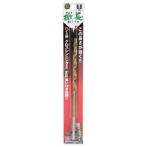 ●サイズ:6.8mm。●標準穴あけ可能厚:(鉄)2.0mm・(木)らせん溝長の2/3程度。●軸:六角軸6.35mm。●使用電動工具:充電式インパクトドライバー・ドリルドライバー・電気ドリル。●加工材料:鉄・木・樹脂・軽金属。