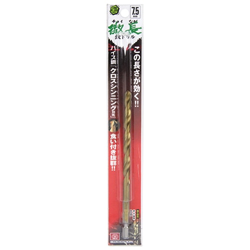●サイズ:7.5mm。●標準穴あけ可能厚:(鉄)2.0mm・(木)らせん溝長の2/3程度。●軸:六角軸6.35mm。●使用電動工具:充電式インパクトドライバー・ドリルドライバー・電気ドリル。●加工材料:鉄・木・樹脂・軽金属。