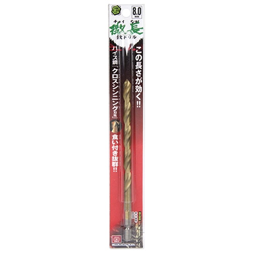 ●サイズ:8.0mm。●標準穴あけ可能厚:(鉄)2.0mm・(木)らせん溝長の2/3程度。●軸:六角軸6.35mm。●使用電動工具:充電式インパクトドライバー・ドリルドライバー・電気ドリル。●加工材料:鉄・木・樹脂・軽金属。