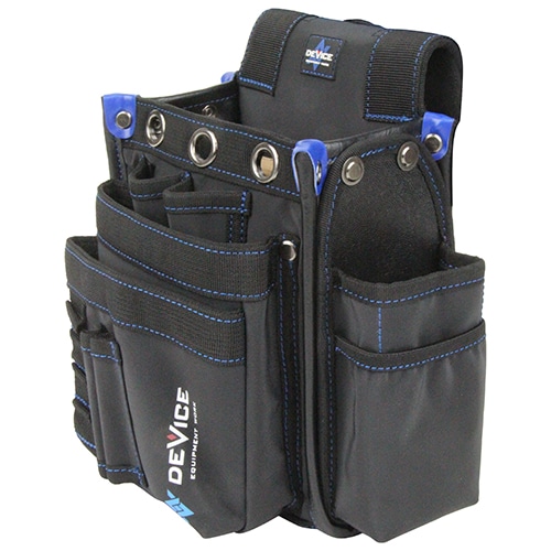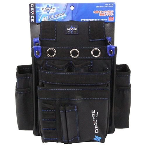 内側ポケット付きで整理しやすいです。バックスリット仕様のベルト通しです。開口部リベット補強で丈夫です。耐久性・耐摩耗性を両立したターポリン生地を採用しています。水平器などが収納できるサイドポケット付きです。