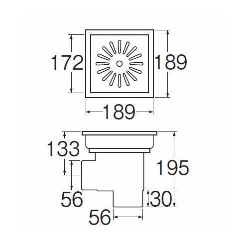 ●縦排水、横排水の兼用タイプです。なお、縦排水は偏心(36mm)しますので施工性に優れています。
