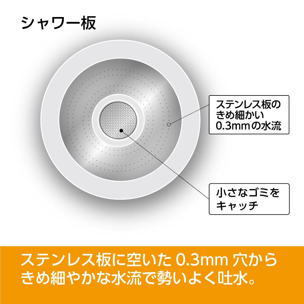 ●シャワーは回転式●ステンレス製0.3mm穴から細かいシャワーが勢いよく吐水します。●先端部にふくらみがある16mm口径のパイプとM22X1.25外ネジ泡沫パイプに取付。●材質 ASA樹脂●最高使用温度60℃
