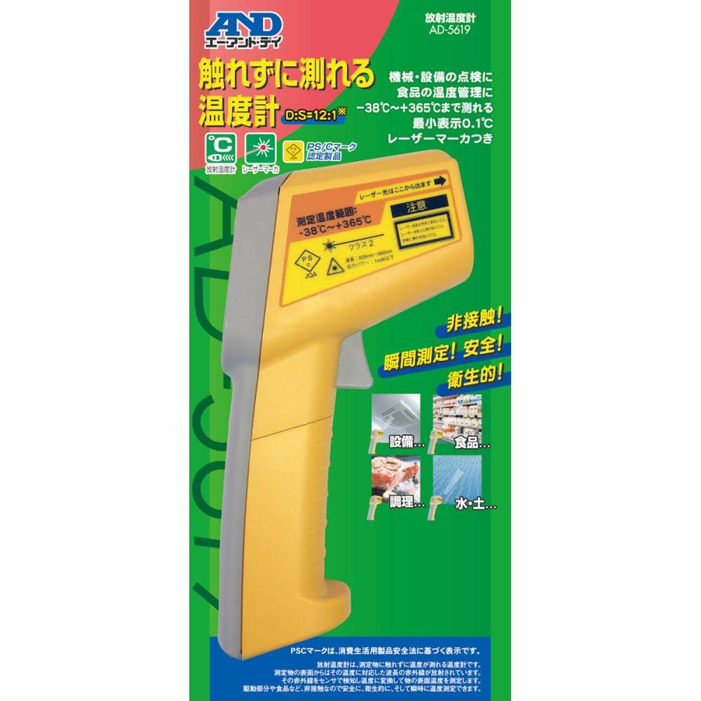 ●空調設備、電気設備の異常温度管理に●保管中の米、果物、野菜、魚、肉などの温度管理に●作物、植物の地温測定に●電源:単4形乾電池×2本(付属)●幅×奥行×高さ:40×113×156mm●放射率:0.95固定●距離対測定範囲比(D対S):12対1●レーザー規格クラス2(JIS C 6802)(レーザー波長635nm~650nm、出力パワー1mW未満)●電源寿命:約18時間(連続使用時、アルカリ電池使用)●取扱説明書、電池(モニタ用)