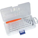 ●六角穴付ボルト類の締結用●収納、保管に便利なプラスチックケース入り。●レンチ:特殊合金鋼、SNCM+Vスペシャル(ハードクロームメッキ)●ドライバー軸:特殊合金鋼、SNCM+V(黒染パーカー)●ドライバーハンドル:アセテート樹脂(セルロースアセテート)