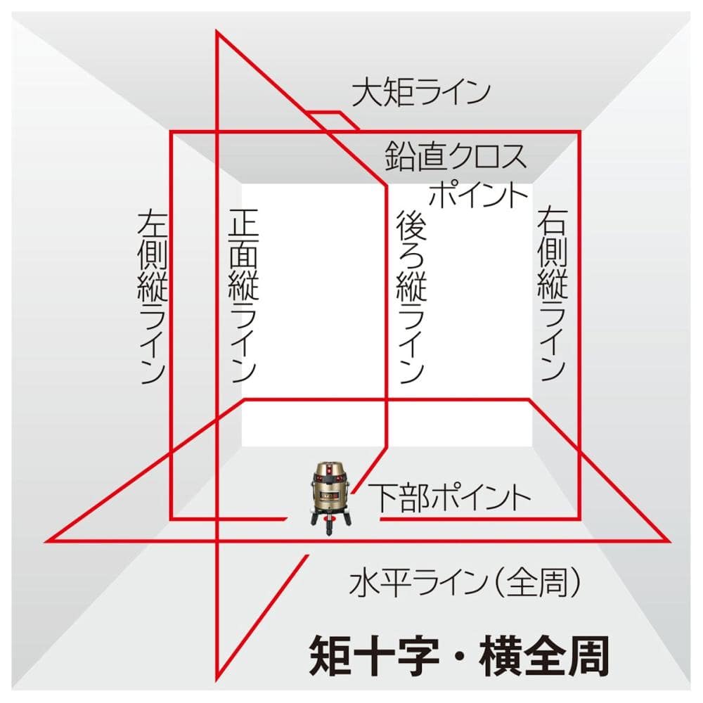 ●輝度:250マイクロワット。●照射ライン:縦フルライン、横全周、ポイント(鉛直、下部)。●制動方式:センサー方式。●盗難・火災保険付。●外装:ABS樹脂。