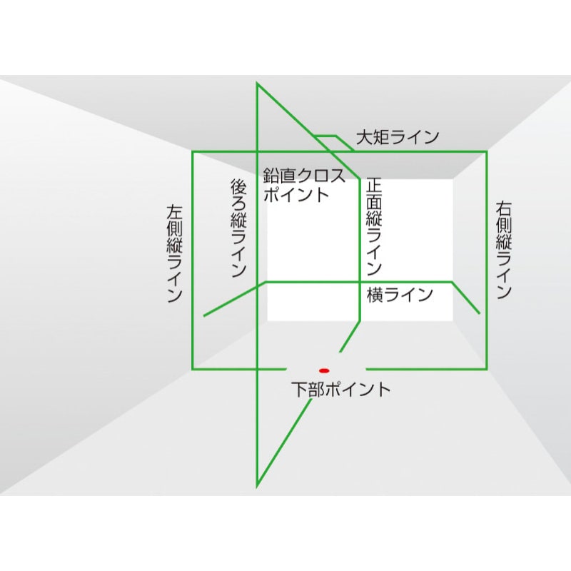 ●照射ライン:縦(前後左右)・水平・大矩・ポイント(鉛直・下部)。
