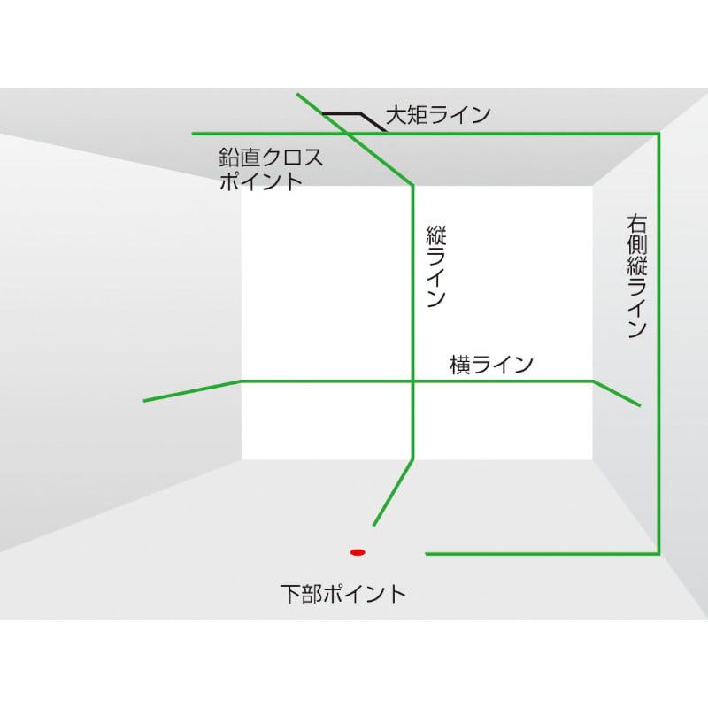 ●照射ライン:縦(正面・右)・水平・大矩・ポイント(鉛直・下部)。