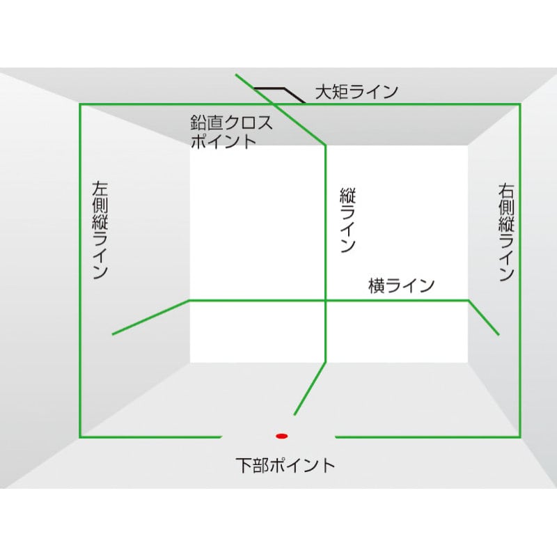 ●照射ライン:縦(正面・左右)・水平・大矩・ポイント(鉛直・下部)。
