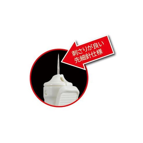 リール面ゴムグリップです。巻取りバネが強めです。液漏れしにくい高密閉設計です。危険を防止する針収納ポイントカルコを標準装備しています。フルオープンでメンテナンス簡単です。