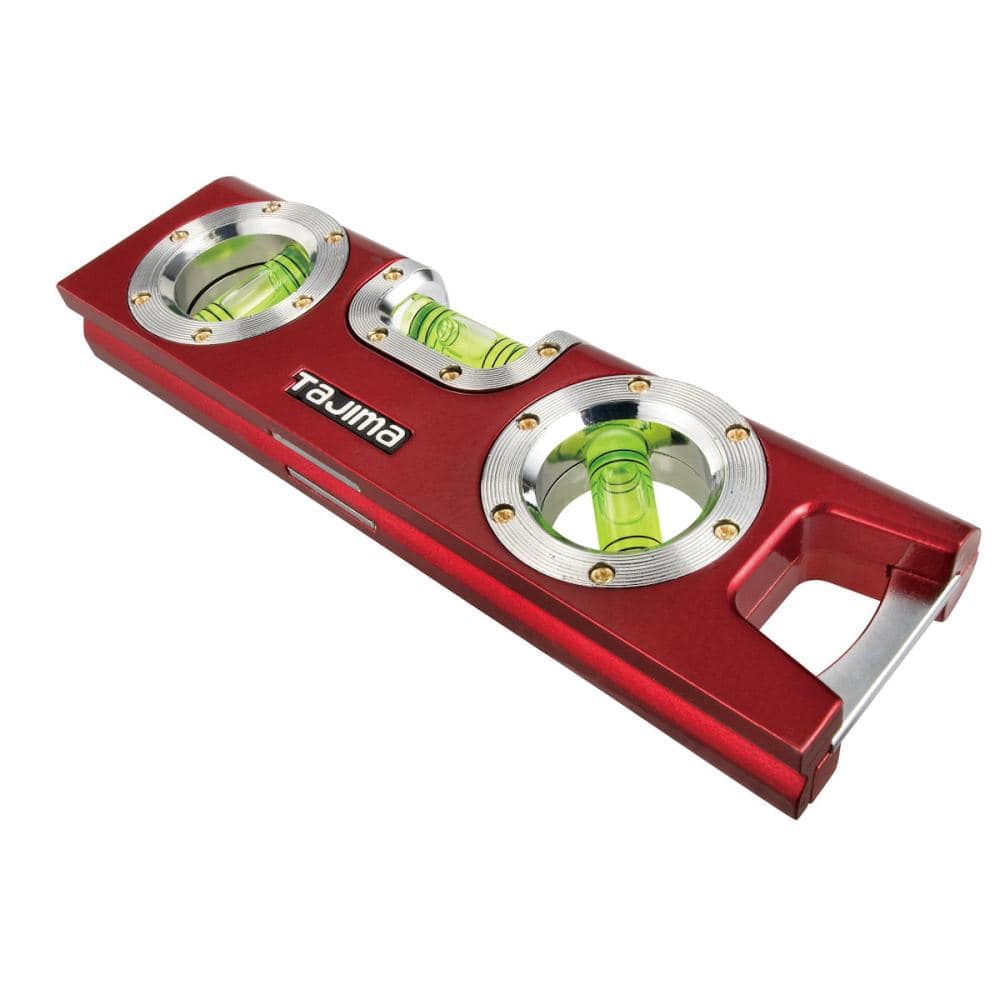 ●長さ:160mm。●気泡管:水平・垂直・45度。●指標線数:水平6本リング、垂直・45度4本リング。●気泡管精度:±1.5mm/1m(±0.0859度以内)。●蓄光シート。●磁束密度:約330ミリテスラ(mT)。●アルミダイカストボディ。●マグネット1個付。●本体:アルミダイカスト。
