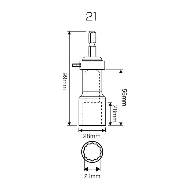 ●21(12角)。●全長:99mm。●落下防止ベルト付。●本体:クロームバナジウム鋼。