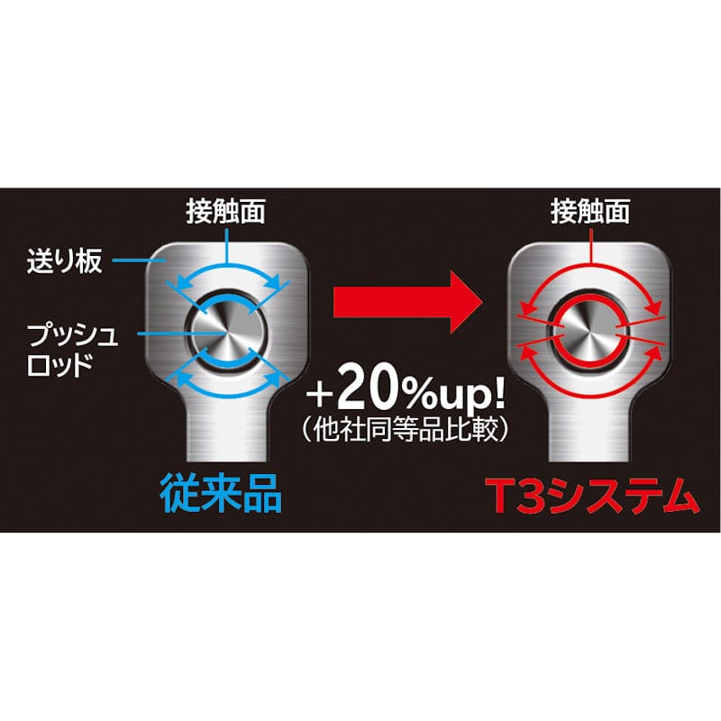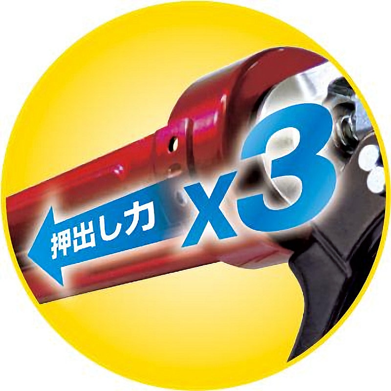 ノズルカット面を自在に操るロータリー式ハンドルを採用しています。押出し力をロスなく伝えるT3システムを搭載しています。液だれ防止機構を搭載しています。硬くなったコーキング剤も軽い力で押し出せます。