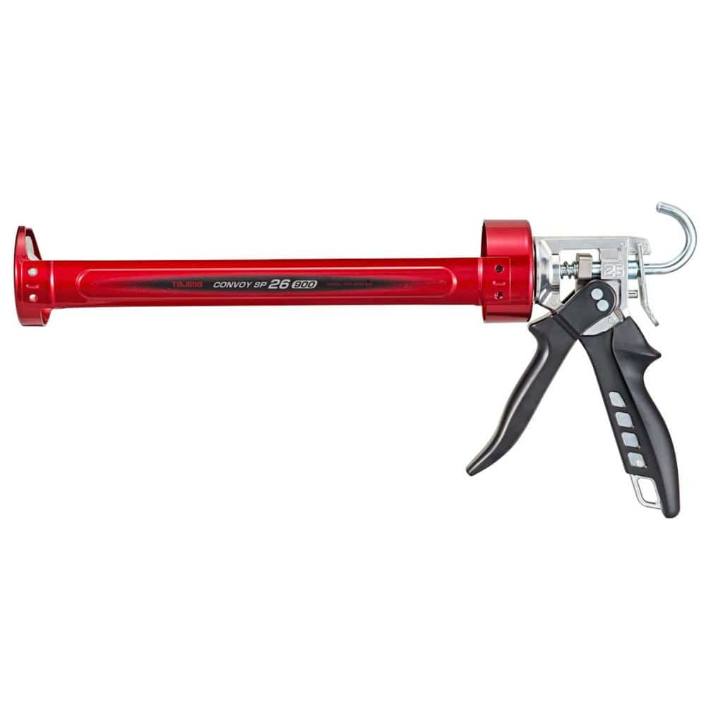 ●適合コーキング剤:筒長さ315mmまで・筒径66mmまで・容量:900ml。●押出し量:4mm。●トリガーグリップ:アルミ、樹脂。