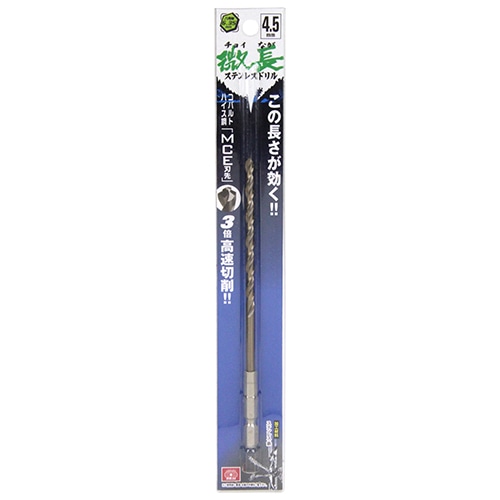 コバルトハイス鋼(Co-HSS)を使用し、高温時の耐摩耗性が高く、ステンレス鋼の切削に最適です。鉄への切削にも寿命抜群です。六角軸なのでインパクトドライバーなどのチャックに直接セットできます。MCE(マルチカッティングエッジ)刃先により切れ味抜群、食い付きと早切れ性能は従来比の3倍です。
