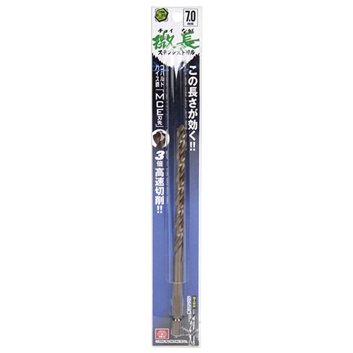 コバルトハイス鋼(Co-HSS)を使用し、高温時の耐摩耗性が高く、ステンレス鋼の切削に最適です。鉄への切削にも寿命抜群です。六角軸なのでインパクトドライバーなどのチャックに直接セットできます。MCE(マルチカッティングエッジ)刃先により切れ味抜群、食い付きと早切れ性能は従来比の3倍です。