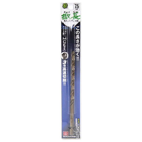 コバルトハイス鋼(Co-HSS)を使用し、高温時の耐摩耗性が高く、ステンレス鋼の切削に最適です。鉄への切削にも寿命抜群です。六角軸なのでインパクトドライバーなどのチャックに直接セットできます。MCE(マルチカッティングエッジ)刃先により切れ味抜群、食い付きと早切れ性能は従来比の3倍です。