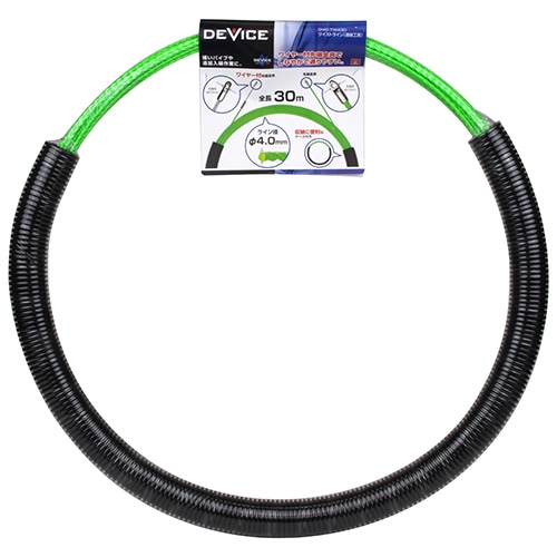 ●ライン径:4.0mm。●フレキシブルアダプター径:7.0mm。●固定型アダプター径:6.5mm。●全長:30m。●線材破断荷重:1.4kN(150kgf)。●全体破断荷重:0.9kN(100kgf)。●ワイヤー:PET。●チューブ:PE。●ケース:PVC。