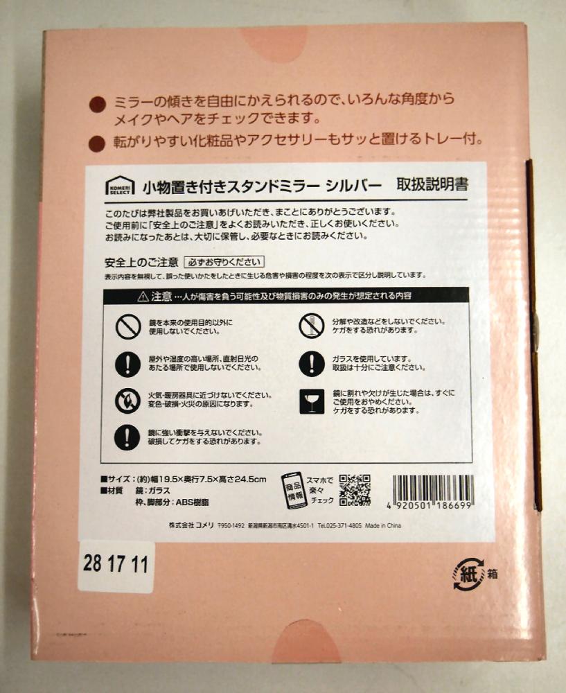 コメリセレクト 小物置き付きスタンドミラー シルバー