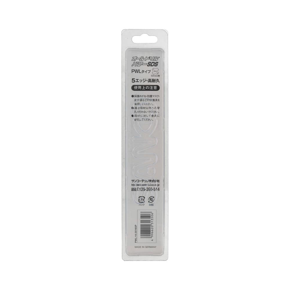 ●被削材:コンクリート・ブロック・モルタル・デッキプレート(貫通)+コンクリート ●刃部:超硬チップ ●刃径(mm):14.5 ●有効長(mm):100 ●全長(mm):165 ●シャンク:SDSplus ●適合機種:軽量ハンマードリル