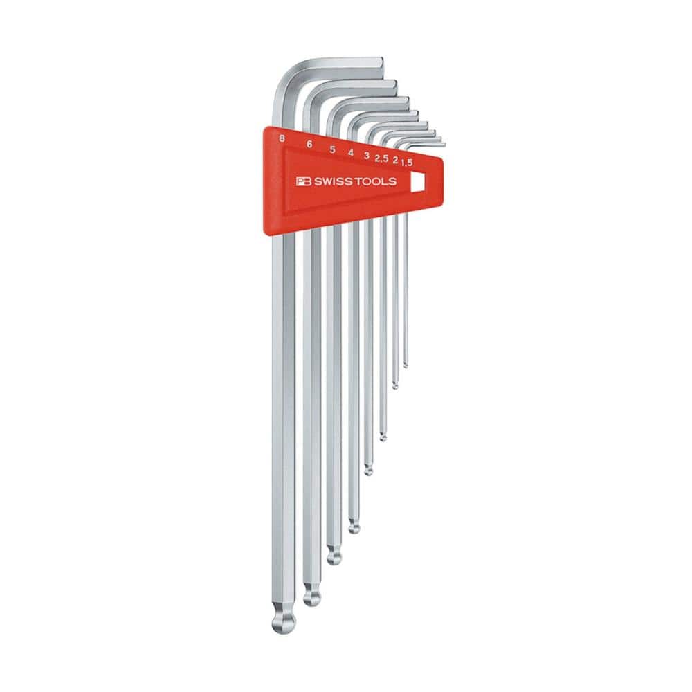 ●質量(g):264●ニッケルクロームメッキされており、耐錆性と長寿命を可能にしています。●エッジは軽く隅取りしてあり、レンチをたやすくネジ穴に差し込むことができます。●レンチには5桁の生産番号が記されており、この番号で原料段階の製造過程まで遡ることができます。●硬度はHRC59と大変高く、しかも強靭に作られているので、耐摩擦性、持久性に優れ、高トルクをかけることができます。●精密に作られたボールポイントで角度のついたところのネジを回すことが可能です。(斜め30°の角度までOK)●ホルダー付き。●セット内容:ボール付ロング六角棒レンチ(212L-1.5、2、2.5、3、4、5、6、8)※ボール部では本締めできません。