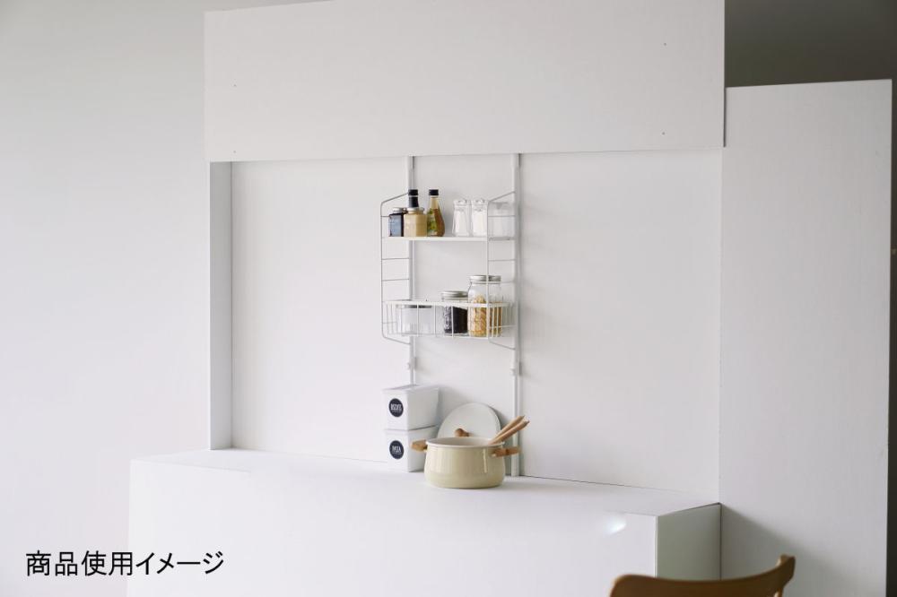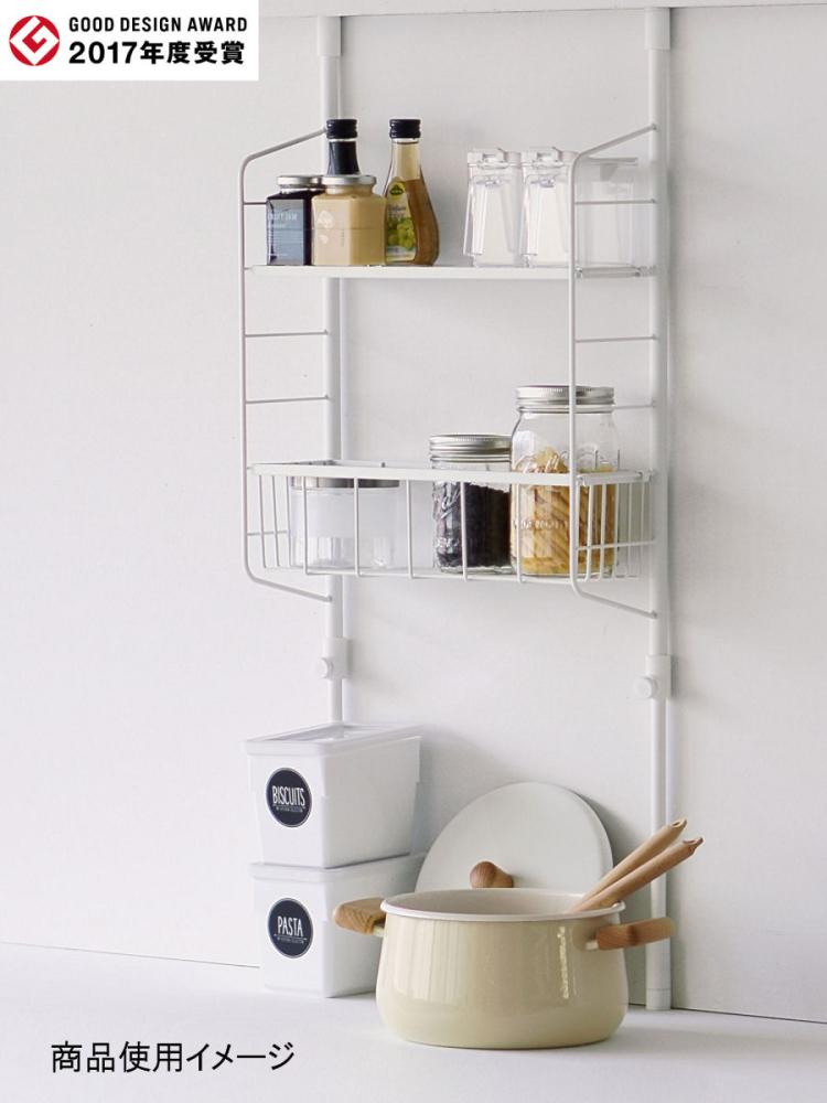 工具不要、取付け簡単な突ぱりキッチンラック 食器の収納を考慮した奥行き14.5cm 、水きりに便利なメッシュトレイ。調味料やラップの収納に便利なメッシュバスケット、もう1セット追加すると他のトレイやバスケットなど自由に組み合わせて連結ができる。 耐荷重 5kg