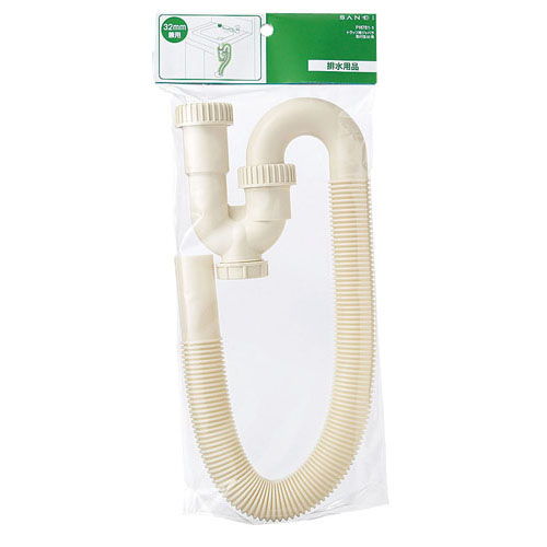 樹脂製トラップ用取付径32mm用パイプはジャバラのため、排水口への位置合わせが簡単ですキャップを外して掃除ができます