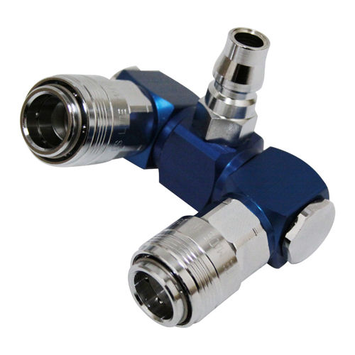 分岐方向は360度回転しホースや配管の負担を軽減したロータリータイプです。常圧用が識別しやすいアルマイトブルーです。