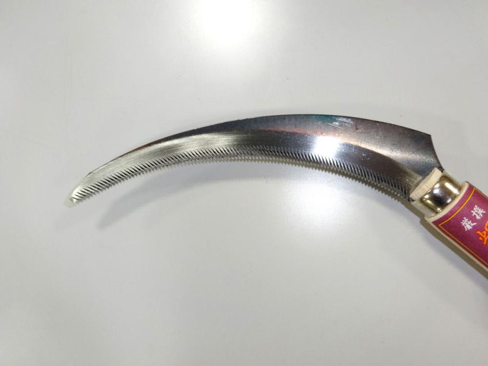 ほうれん草等の葉菜収穫に、先細鋸鎌