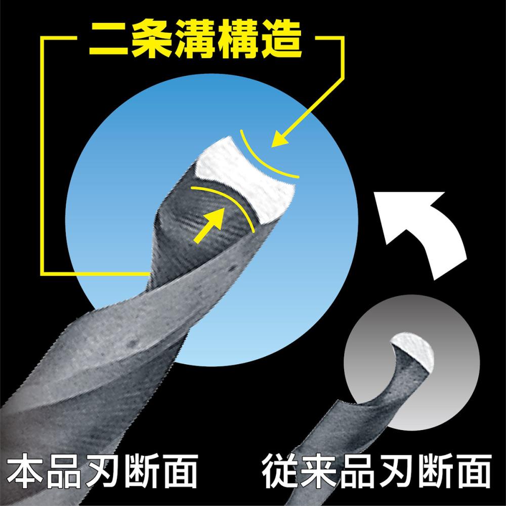 折れに強い二条溝構造 刃先:ハイス鋼/軸部:特殊合金鋼