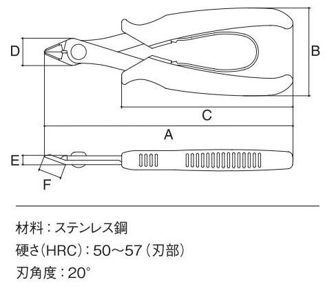 ●プラスチック製ばね付●ステンレス(SUS440A相当)●切断能力(mm)樹脂:3●全長(mm):130
