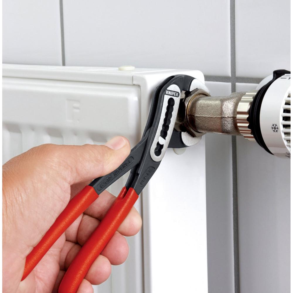 ●ヘッド仕上げ:黒防錆コート、磨き●ハンドル仕様:滑り止めプラスチックコーティング●パイプ直径(inch):径2●パイプつかみ能力(径mm):46●ナットつかみ能力(mm):50●調整段数:9●全長(mm):250●質量(g):319●9段階のノッチ調整により、掴み能力をアップ。●ヘッドとジョイント部分のスリムな構造により、ワークへの作業性にとくに優れています。●パイプやナットをセルフロックするので、ワークから滑り落ちることがなく、少ない力で確実につかみます。●ジョイント部は横方向へのブレを防止するダブルガイドのボックスジョイント構造。●挟み込み防止により、指が挟まれるのを防ぎます。●入念な焼入れ処理が施されたつかみ面の硬度は約HRC61で、耐磨耗性が高く、確実なグリップを発揮します。●頑丈な構造で、汚れに強いため、屋外での作業に特に適しています。●材質はオイル焼き入れ焼き戻し処理済みのクロームバナジウム電気鋼。