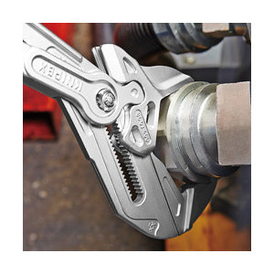 ●ヘッド仕上げ:クロムメッキ●ハンドル仕様:プラスチックコーティング●つかみ面:フラット●ナット開口範囲(inch):3.3/8●ナット開口範囲(mm):85●調整段数:25●寸法B1(mm):12.5●寸法B2(mm):16.0●寸法B3(mm):20.0●全長(mm):400●質量(g):1460●つかみ面はフラットですので、対象物に傷をつけません。●プライヤーを握ることにより、あそび(ガタ)は無くなりますので、軟らかいナット等のカドにダメージを与えません。●プッシュボタンにより素早く簡単にアゴの幅を細かく調節できます。●プライヤーレンチ一本あれば、多くのサイズのレンチを持つ必要はありません。●つかみ面は常に平行に可動し、ミリ、インチを問わず使用できます。●特殊なヘッドアクションによりラチェットハンドルのように操作でき、ナットの締め緩めを素早く行うことができます。●平行なジョーの遊びによって、最大の開口幅の全範囲を無段階に掴めます。●てこの原理を最大限発揮するデザインで、ハンドルに加えた10倍の力がアゴに加わります。●鍛造により大変頑丈です。●材質はオイル焼き入れ焼き戻し処理済みのクロームバナジウム鋼。●大きなプラスチック、銅、真鍮、ステンレスおよびクロムなど圧力に弱い表面にも使用可能。●最大開口幅SW85mmまたは3.3/8inchまで調整できるため、非常に経済的です。●プラントメンテ、工場保全、建機、農機具に。