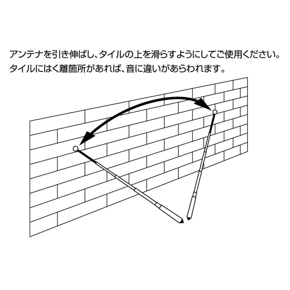 ●タイルのはく離を探す工具。●球体部:工具鋼●アンテナ部:ステンレス●グリップ部:ゴム●ストラップ:ナイロン