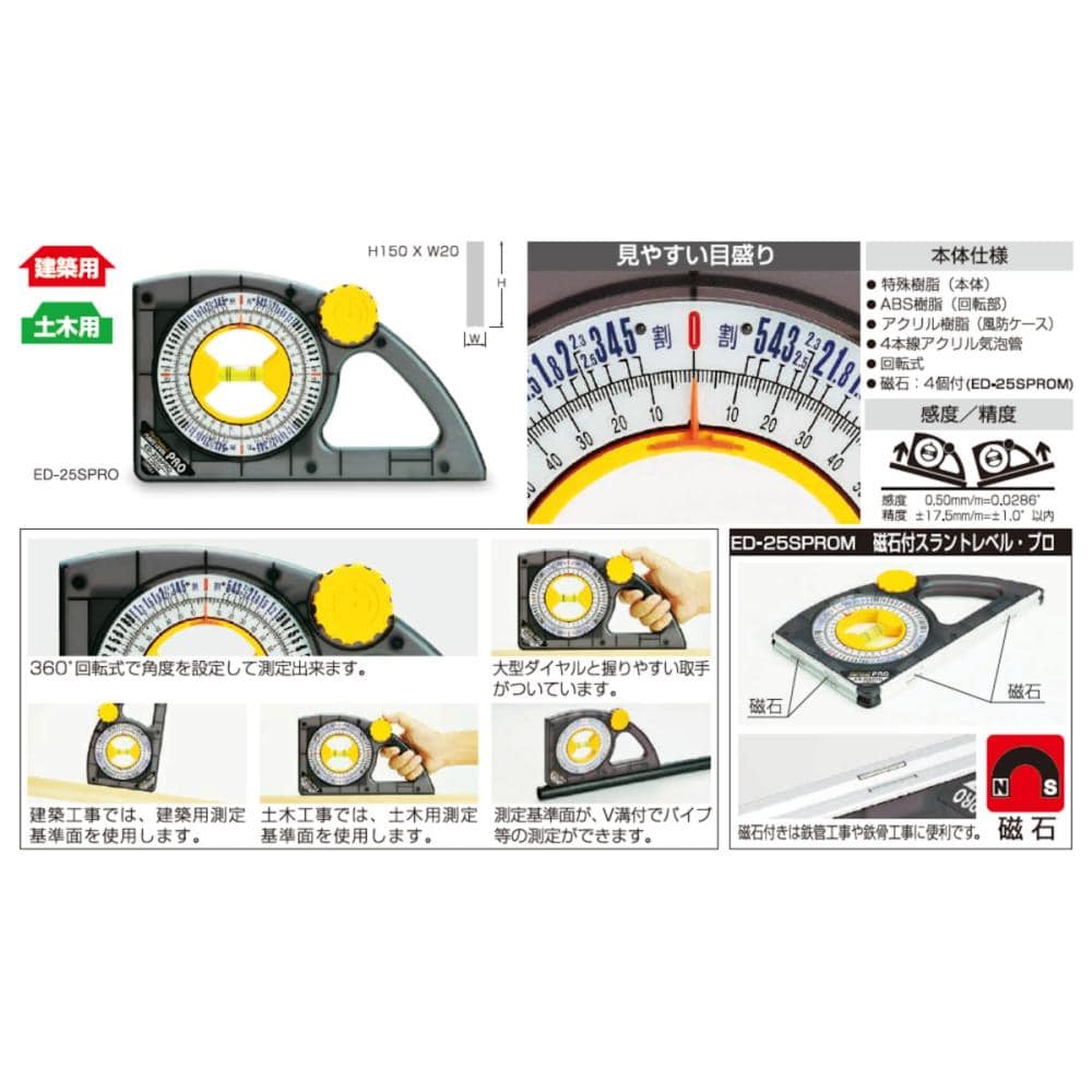 ●法勾配・屋根勾配の測定および設定に。●感度:0.50mm/m=0.0286°●精度:±17.5mm/m=±1.0°以内●ダイヤル回転式●本体:特殊樹脂●長さ(mm):250●高さ(mm):150●厚み(mm):20●最小読取値:1°●設定勾配: