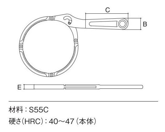 ●オイルエレメントの脱着に。●S55C●適用径(mm):115~140●全長(mm):230