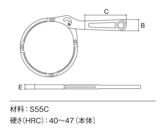 ●オイルエレメントの脱着に。●S55C●適用径(mm):95~115●全長(mm):200