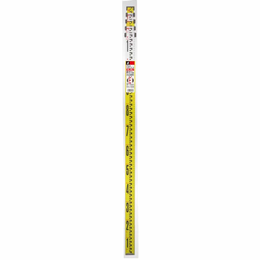 ●測量作業に。●表目盛:10mmピッチ、1mごとに本体色を黄・白色分け●裏目盛:1mmピッチの通し目盛付●本体:アルミ●ジョイント部:ABS樹脂●タイプ(段):5●幅(mm):50●縮長~全長(mm):1244~5000